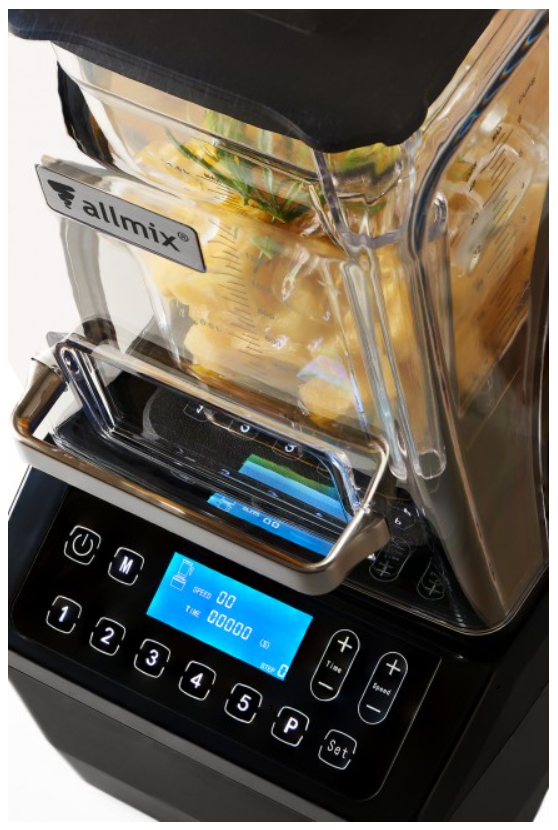 Бренд - Allmix Артикул - AMX-885BK Объем (л) - 2 Кол-во скоростей - 10 Скорость вращения (об/мин) - 4000-22000 Импульсный режим - Да (программируемые циклы) Мощность (кВт) - 1.5 (1500 Вт) Высота (мм) - 460 Ширина (мм) - 230 Глубина (мм) - 260 Вес - 7.9 кг Дополнительные характеристики: - Материал стакана: Поликарбонат Tritan - Количество стаканов в комплекте: 1 - Ножевой блок: съемный, заменяемый - Материал ножа: нержавеющая сталь AISI 420 - Тип управления: тачскрин с подсветкой - Дисплей: ЖК с цифрами, текстом и пиктограммами - Макс. длительность программы: 1200 сек (20 мин) - Количество программ: 6 предустановленных + 6 пользовательских - Звукоизоляция: есть (кожух из поликарбоната Lexan)