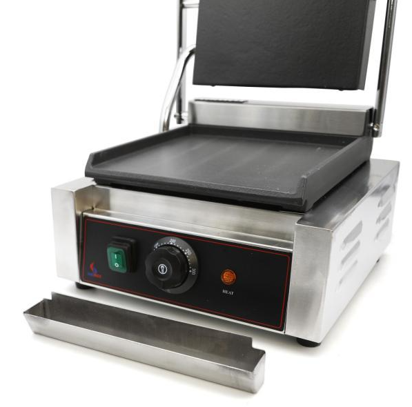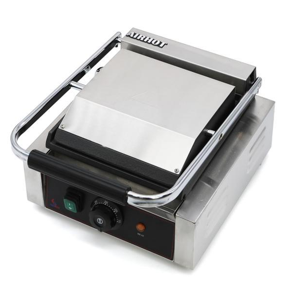 Электрический прижимной гриль Airhot CG-FF с гладкими рабочими поверхностями из чугуна предназначен для жарки различных продуктов, таких как мясо, рыба, морепродукты, птица и овощи, что делает его идеальным выбором для ресторанов, кафе и предприятий общественного питания. Он отлично подходит для приготовления популярных блюд, включая шаурму, бургеры, стейки и горячие сэндвичи.