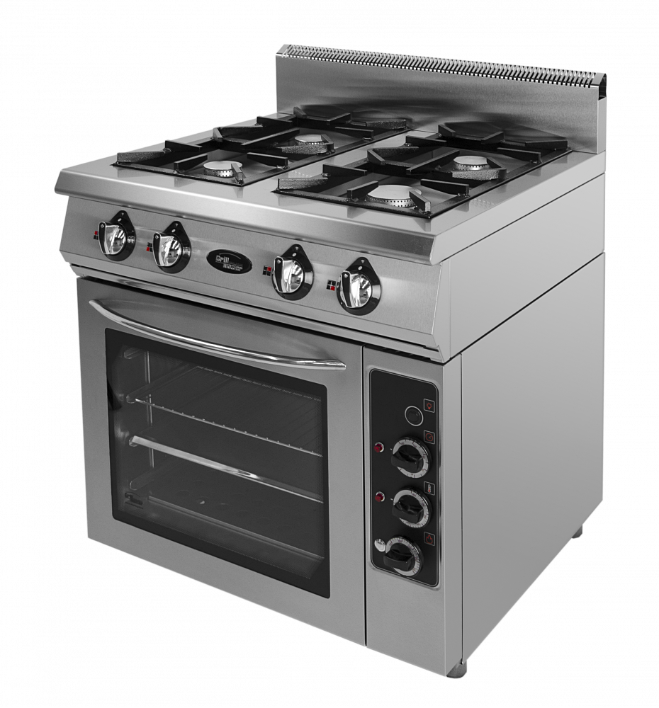 В дополнение к плите 50001,электрическая духовка 4хGN 2/1 из н/стали, мощность духовки 4,5 кВт, с таймером 120 мин, шаг между уровнями 90 мм, с подсветкой камеры духовки. Дверь духовки из закаленного стекла, исполнение плиты и духовки - полностью из н/стали г.нетто 800x800x1050, 159кг, 3 горелки по 6.5 кВт, 1 - 9 кВт, г.брутто: 950х950х1200, 184кг, общая газовая мощность 28,5 кВт. Опционально доступны решетки горелок плиты из нержавеющей стали и чугуна.