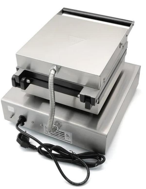 Устройство позволяет одновременно готовить 2 вафли прямоугольной формы с толщиной 1,2 см.